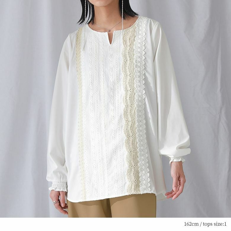 1.配色レースデザインブラウス