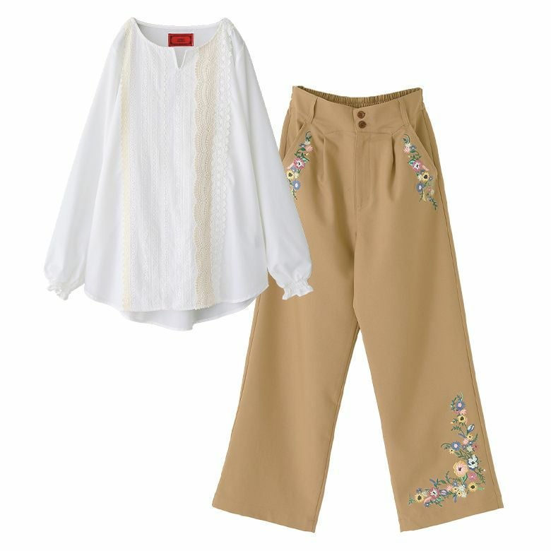 【送料無料・数量限定】『贅沢レース×刺繍で大人かわいい抜け感放つコーデ2点SET』