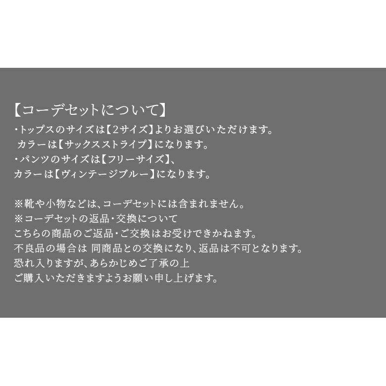 ※コーデセットの返品・交換について。不良品の場合は同商品との交換となり、返品は不可となります。恐れ入りますが、予めご了承の上、ご購入いただけますよう宜しくお願い申し上げます。
