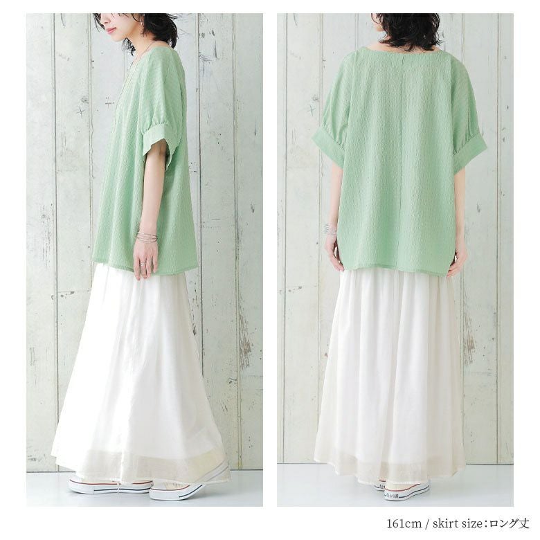 着丈が選べる!五分袖トップス×フレアスカート2点コーデSET♪