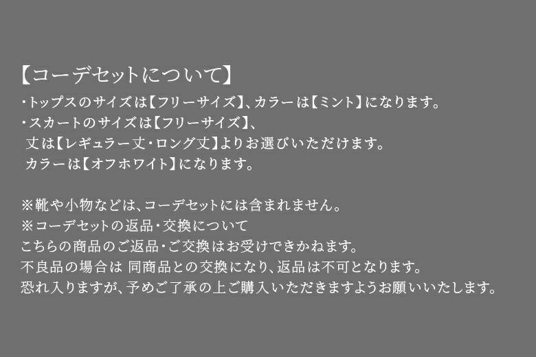※コーデセットの返品・交換について。不良品の場合は同商品との交換となり、返品は不可となります。恐れ入りますが、予めご了承の上、ご購入いただけますよう宜しくお願い申し上げます。