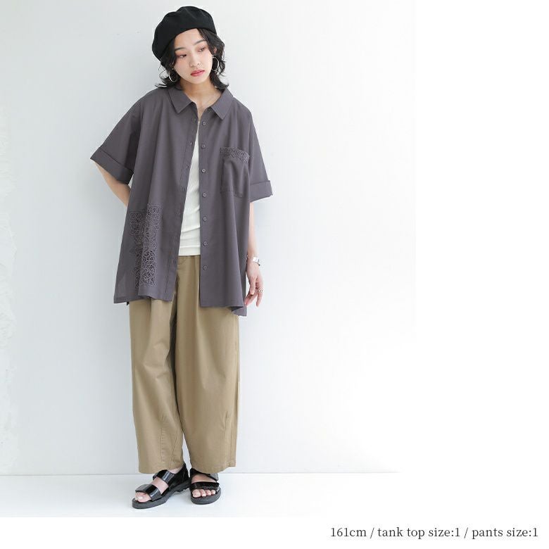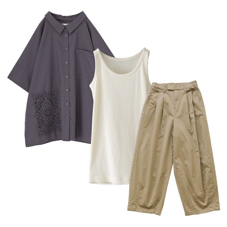 送料無料★シャツ×タンクトップ×ワイドパンツ3点コーデSET♪