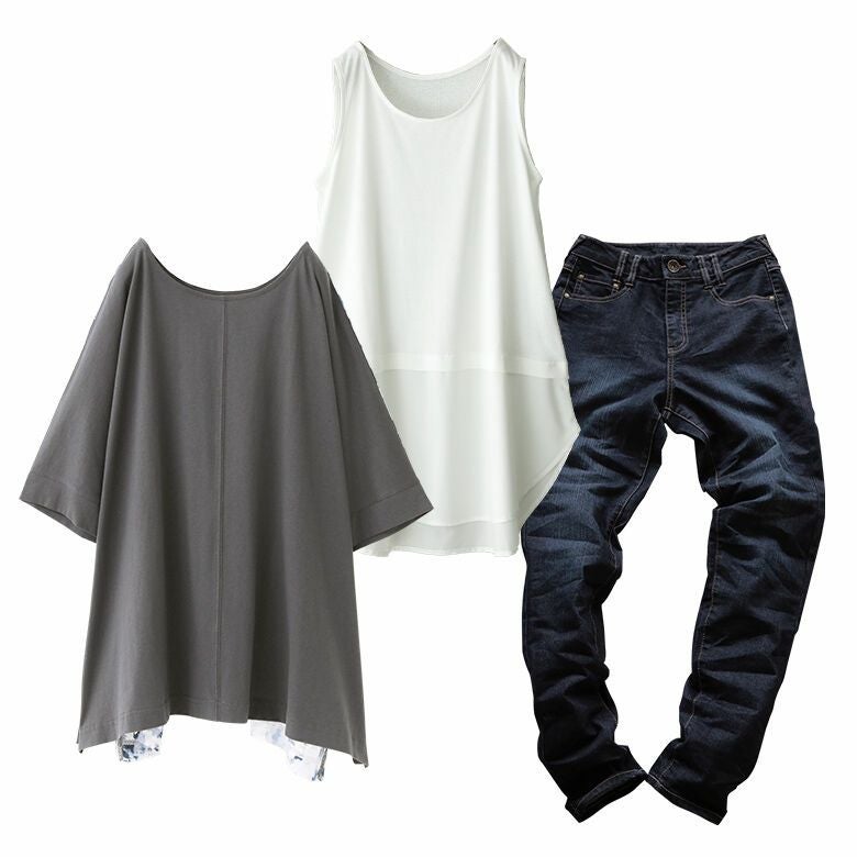 送料無料★カットソー×タンクトップ×デニム3点コーデSET♪