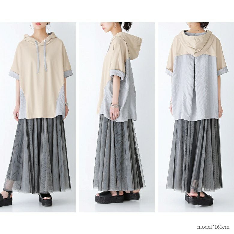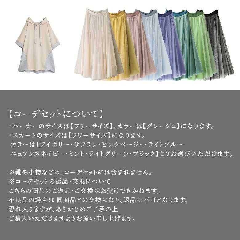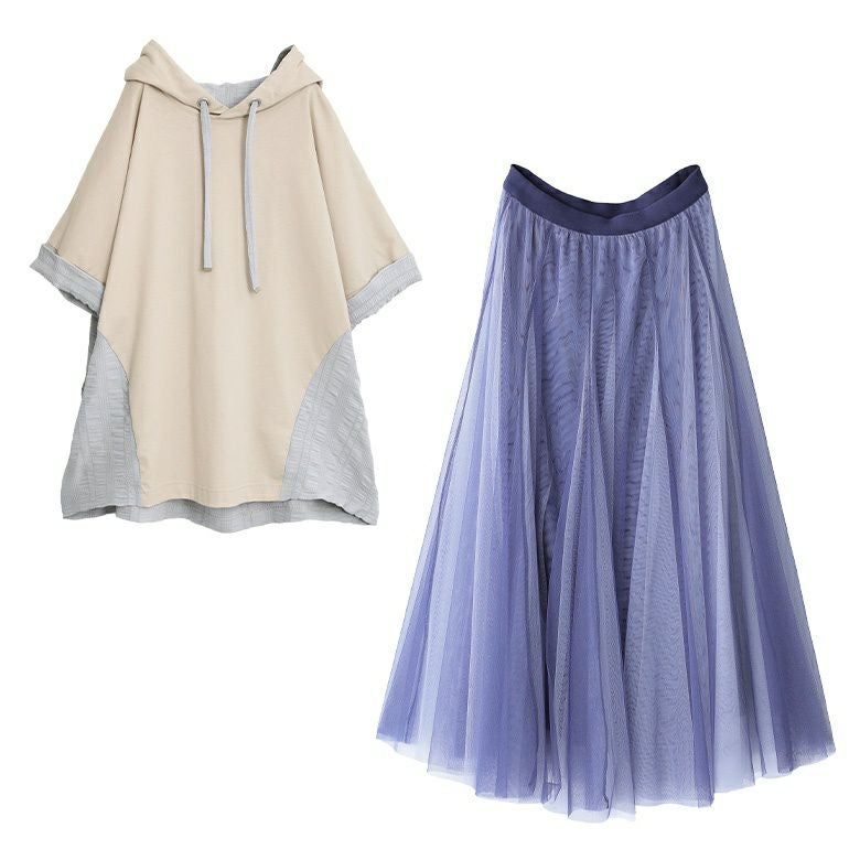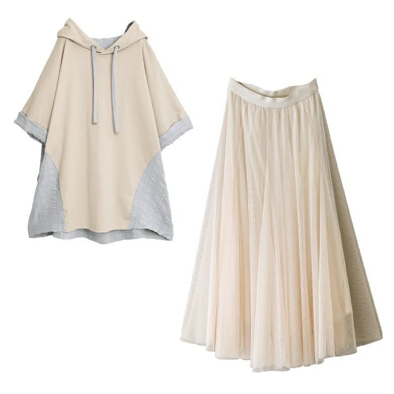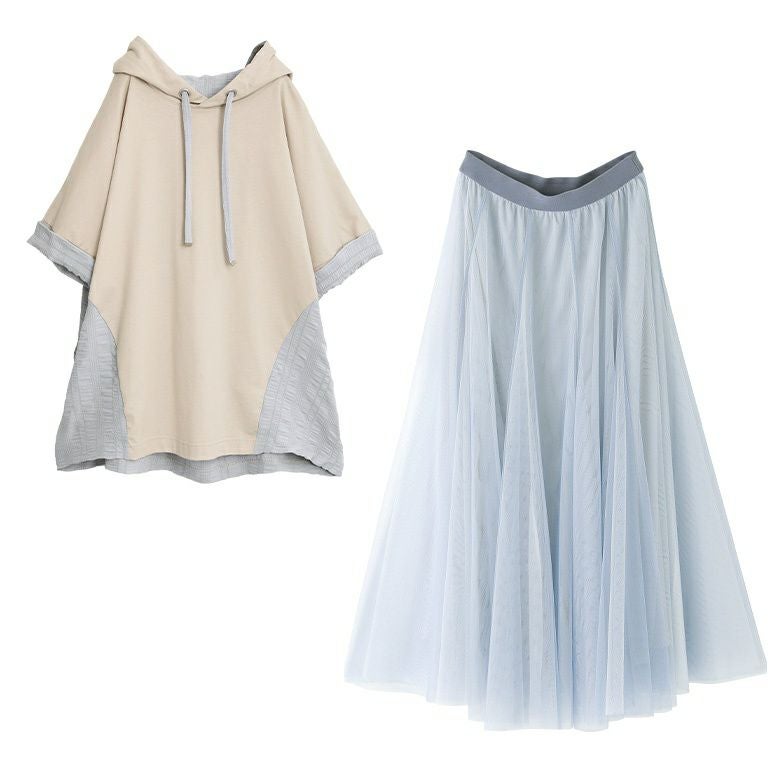 異素材半袖パーカー×"カラーが選べる"チュールスカート2点コーデSET♪