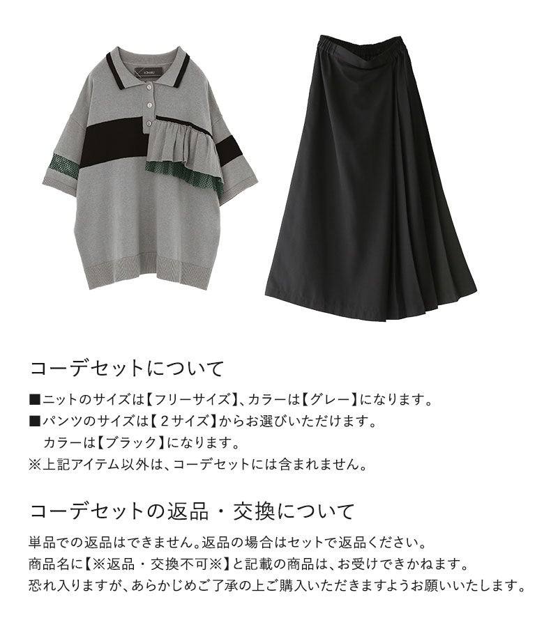 他の画像を見る 届いてすぐにお洒落に変身2点コーデSET♪ 『配色フリルポロニット×カシュクール風アシメプリーツパンツコーデ2点SET』【メール便不可】【40】 ¥ 12,960 税込 販売開始前です。 販売期間 2026/04/23 10:00 〜 2027/04/20 23:59 (0)