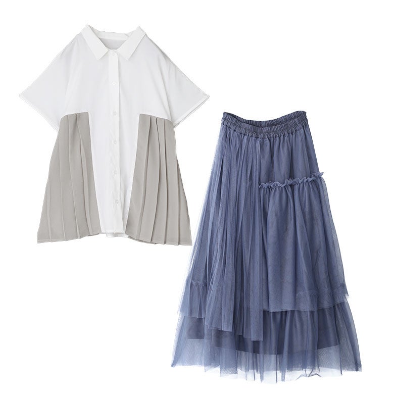 他の画像を見る 届いてすぐにお洒落に変身2点コーデSET♪ 『サイド異素材プリーツシャツ×プリーツデザインチュールスカートコーデ2点SET』【メール便不可】【30】 ¥ 13,960 税込 販売開始前です。 販売期間 2026/04/23 10:00 〜 2027/04/20 23:59 (0)