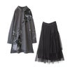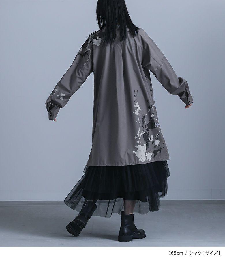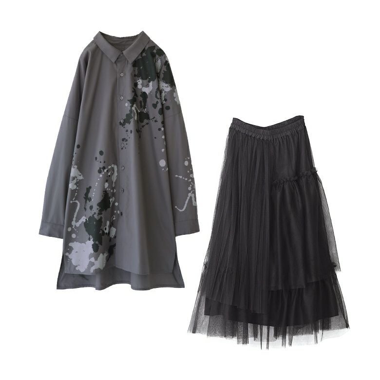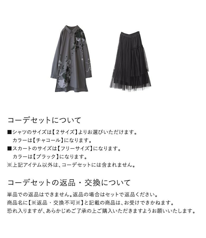 『スプラッシュペイントシャツ×プリーツデザインチュールスカートコーデ2点SET』