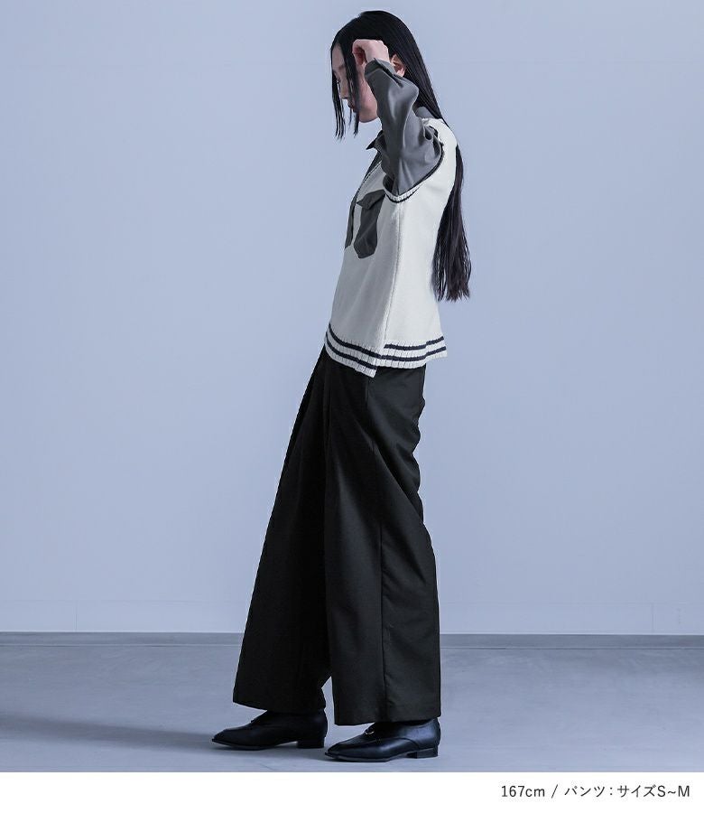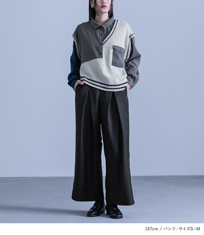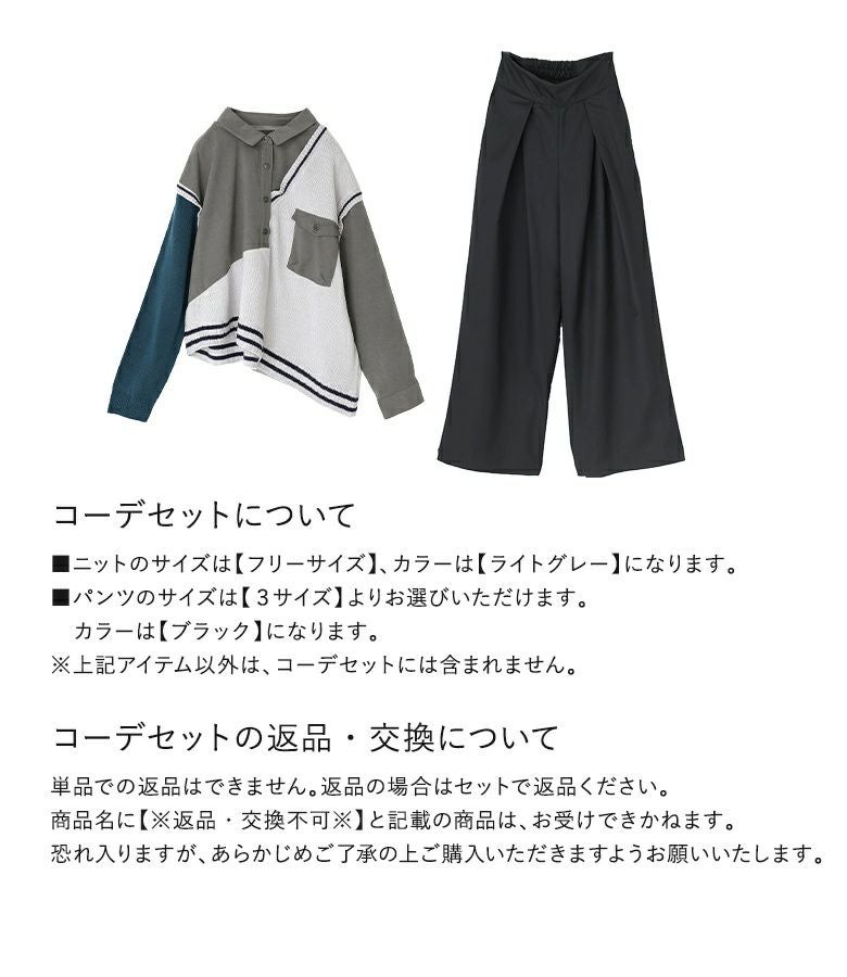 『シャツドッキングアシメニット×ハイウエストタックパンツコーデ2点SET』