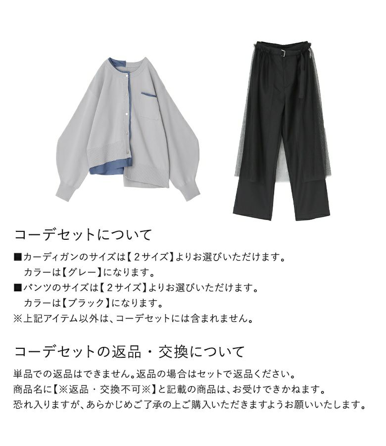 『ニットカーディガン×チュールスカート付きパンツコーデ2点SET』