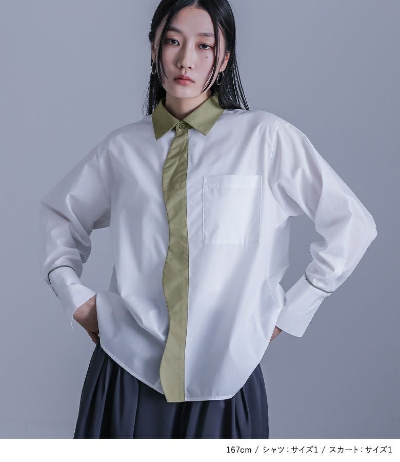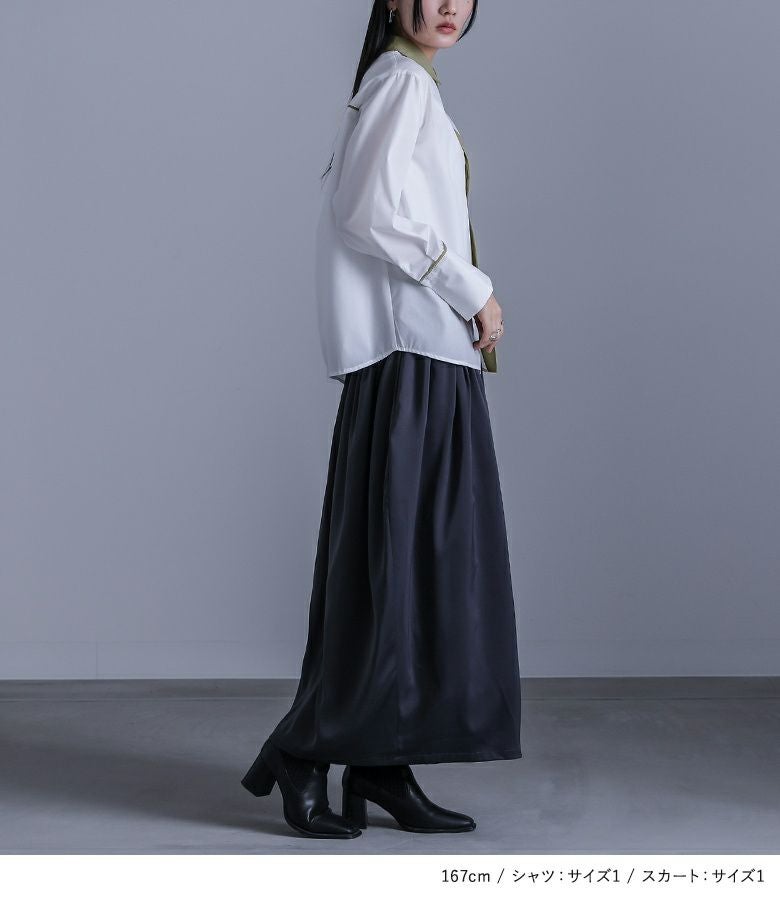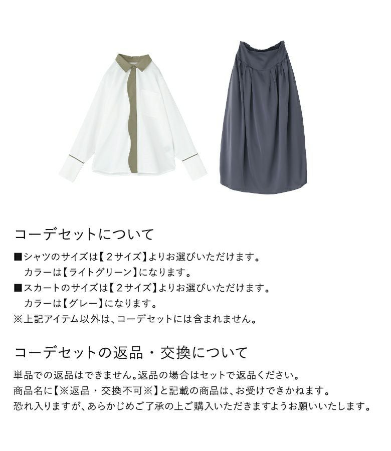 『配色シャツ×ハイウエストコクーンスカートコーデ2点SET』