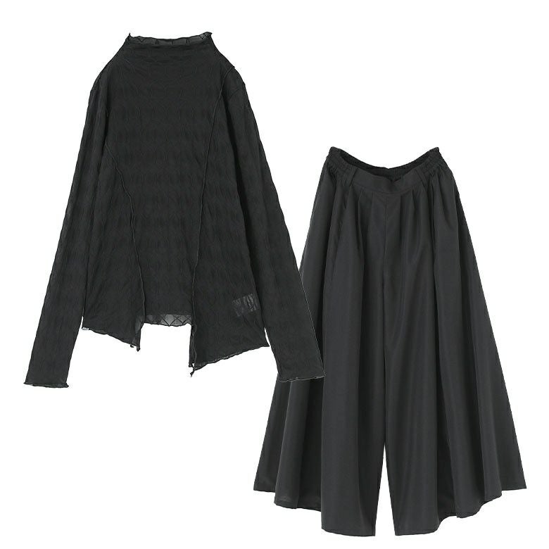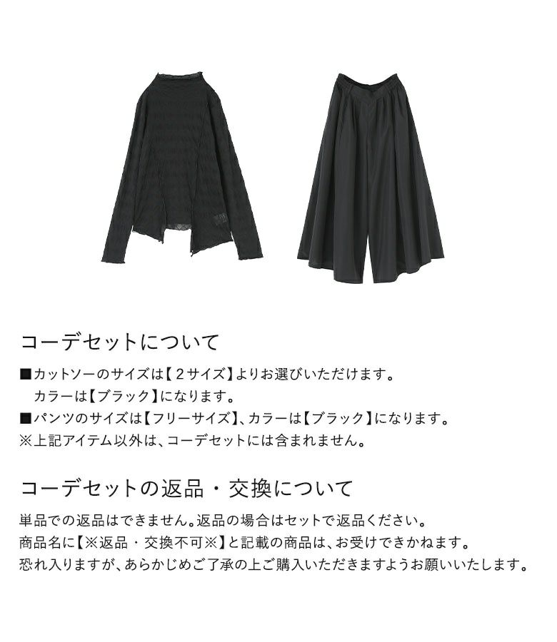 『シアーアシメカットソー× ボリュームワイドパンツコーデ2点SET』