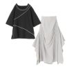 『アシンメトリーシャーリングスカート×アシンメトリー配色パイピングカットソーコーデ2点SET』