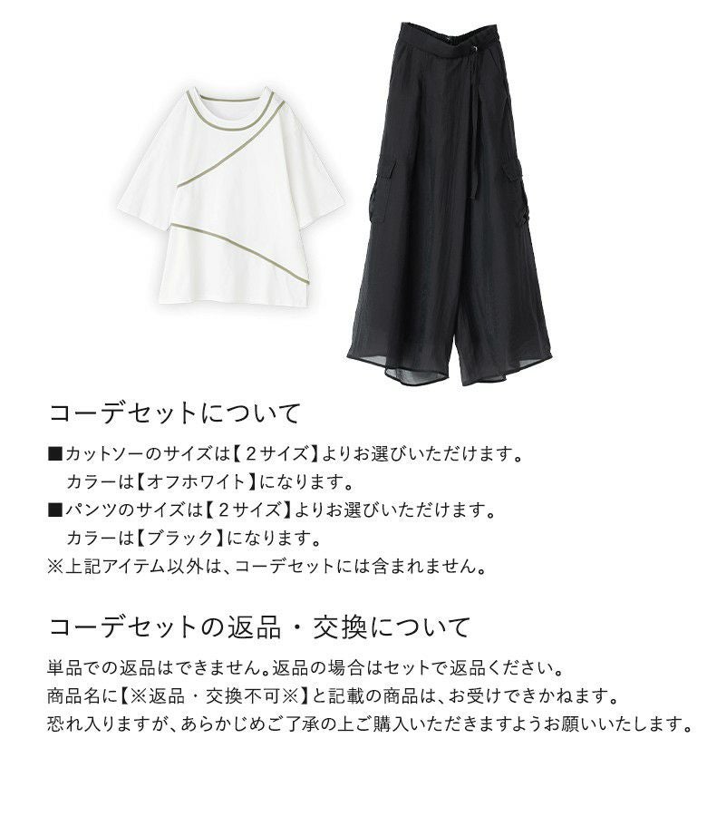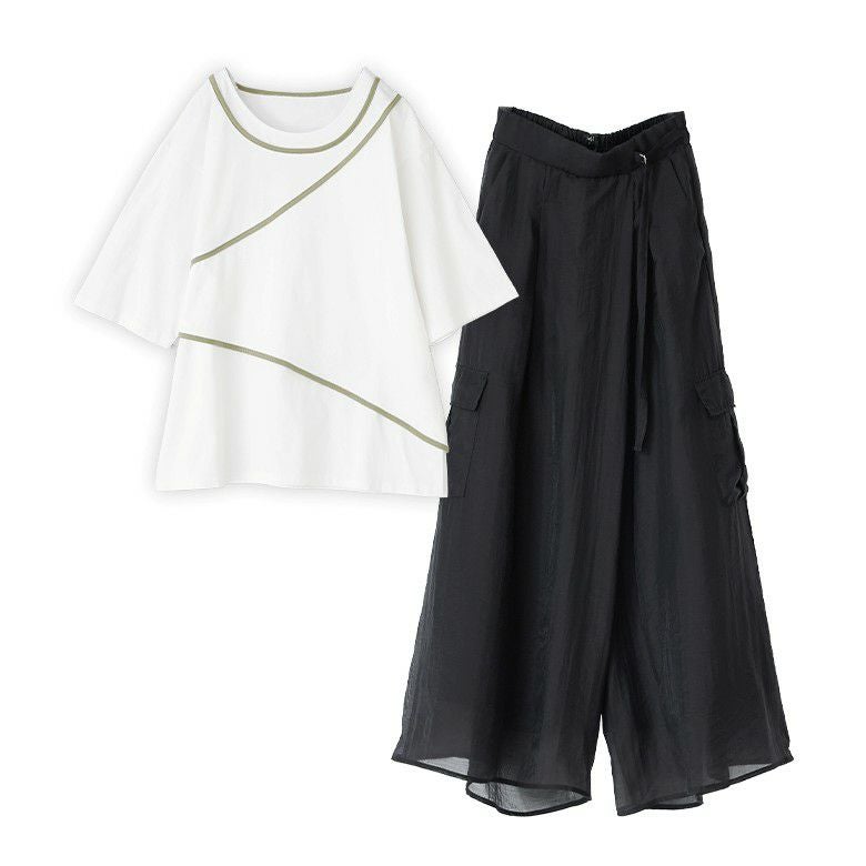 『パイピングカットソー×シアーワイドカーゴパンツコーデ2点SET』