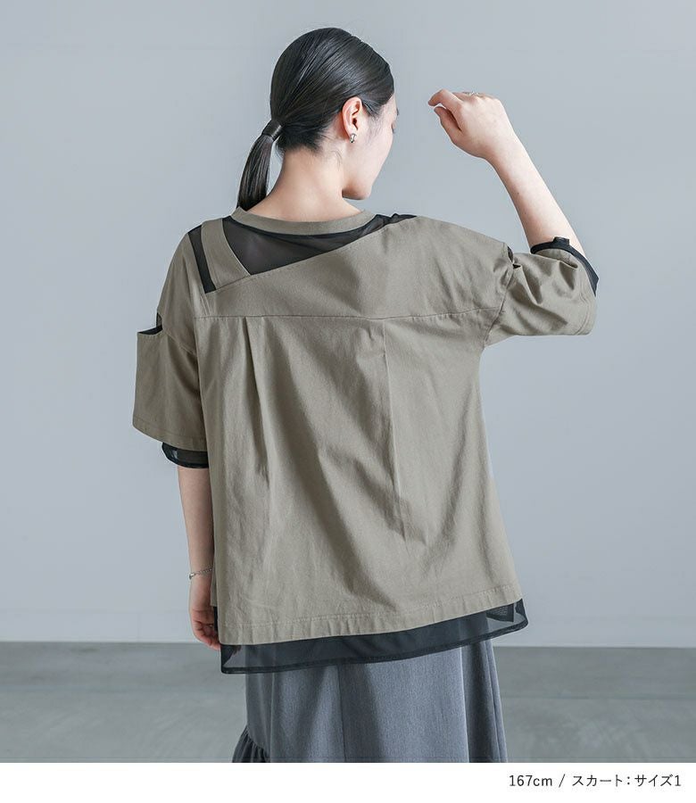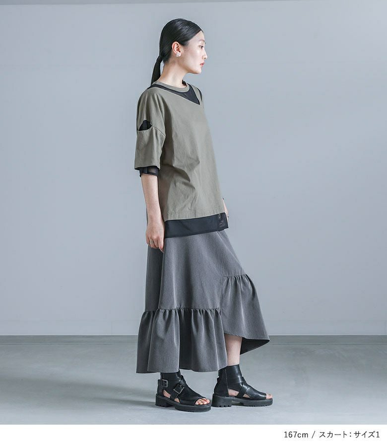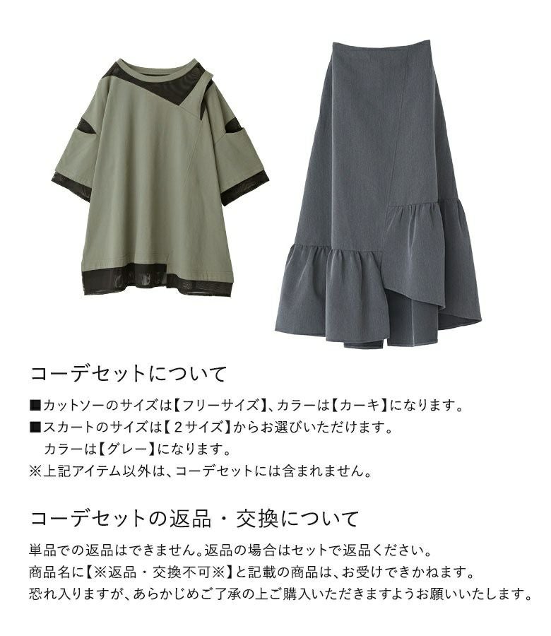 4. 【送料無料】『シアードッキング配色Tシャツ×アシンメトリースカートコーデ2点SET』【メール便不可】【20】