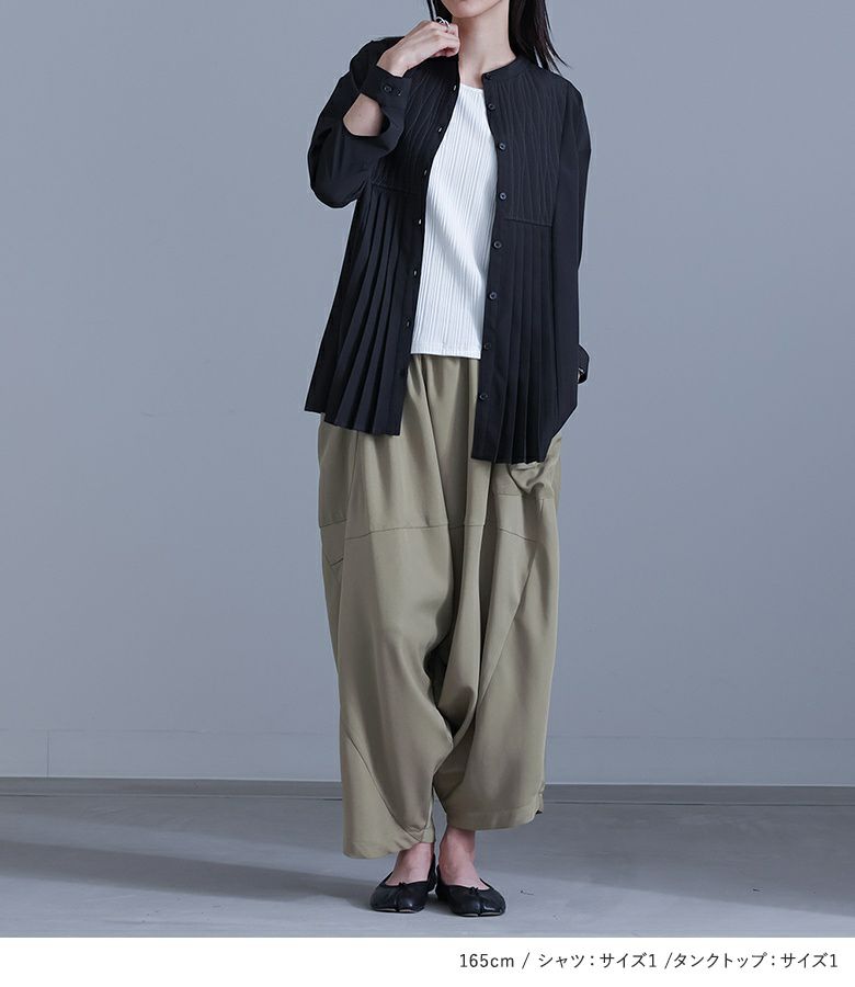 4. 【送料無料】『キルティング切替プリーツシャツ×変形ドレープサルエルパンツ×変形2枚重ねリブタンクトップコーデ3点SET』【メール便不可】【30】