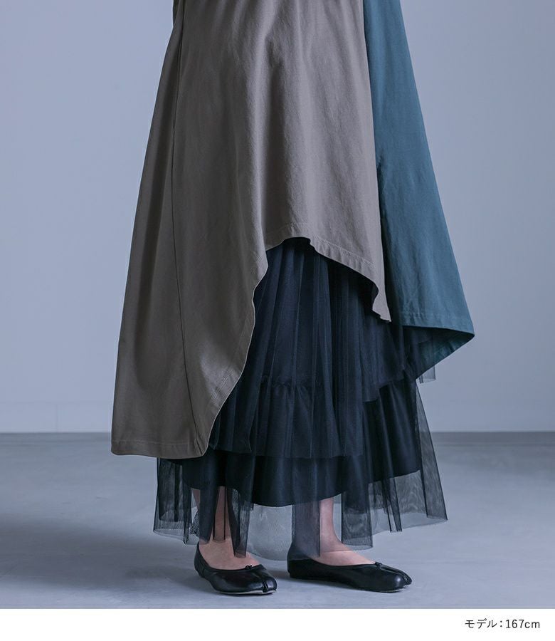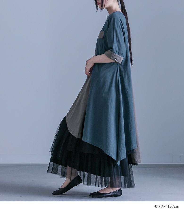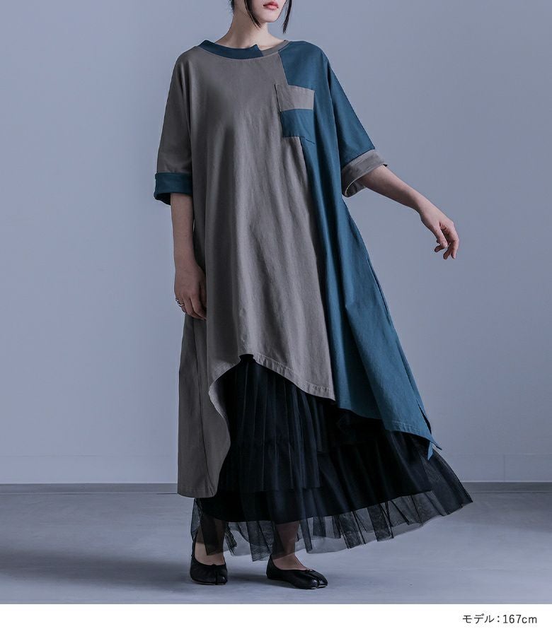 4. 【送料無料】『バイカラーアシメ切替ワンピース×プリーツデザインチュールスカートコーデ2点SET』【メール便不可】【40】