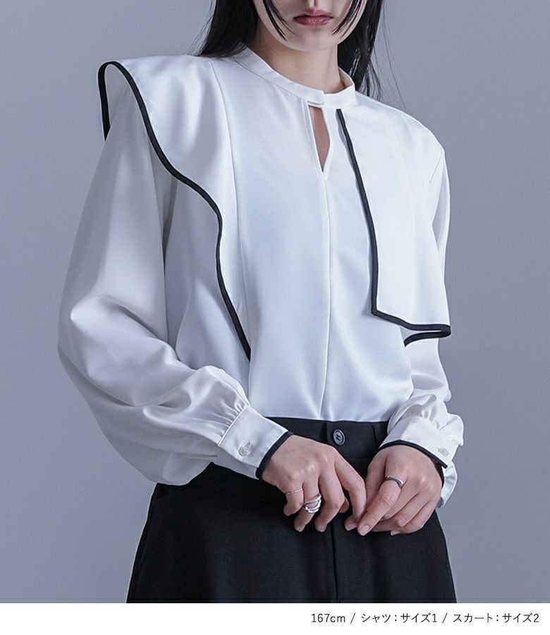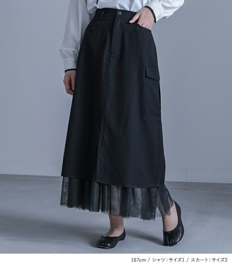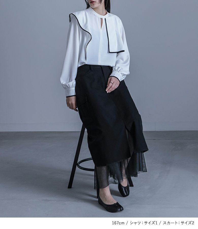 4. 【送料無料】『フリルヨークデザインシャツ×チュール切替ナロースカートコーデ2点SET』【メール便不可】【20】