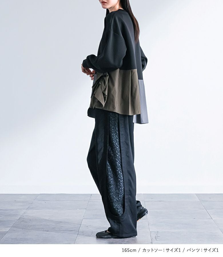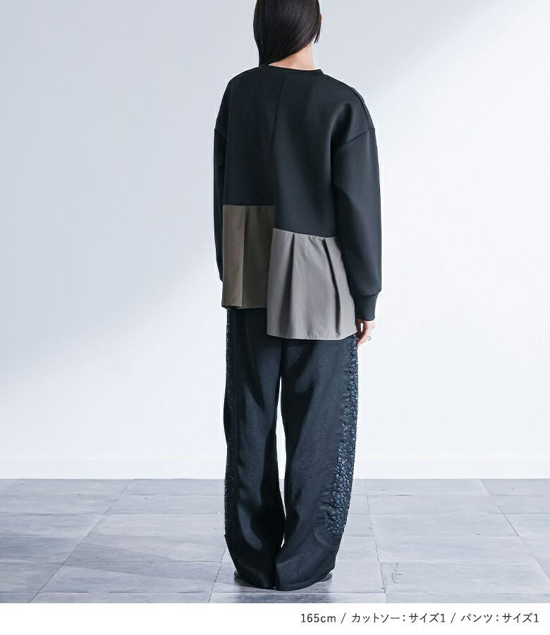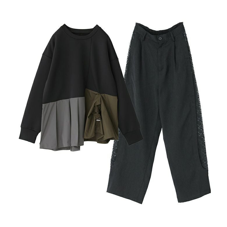 『異素材タックカットソー×脇レース切替バレルパンツコーデ2点SET』