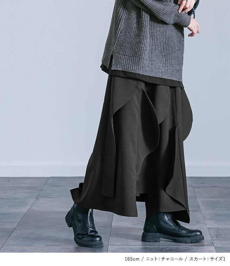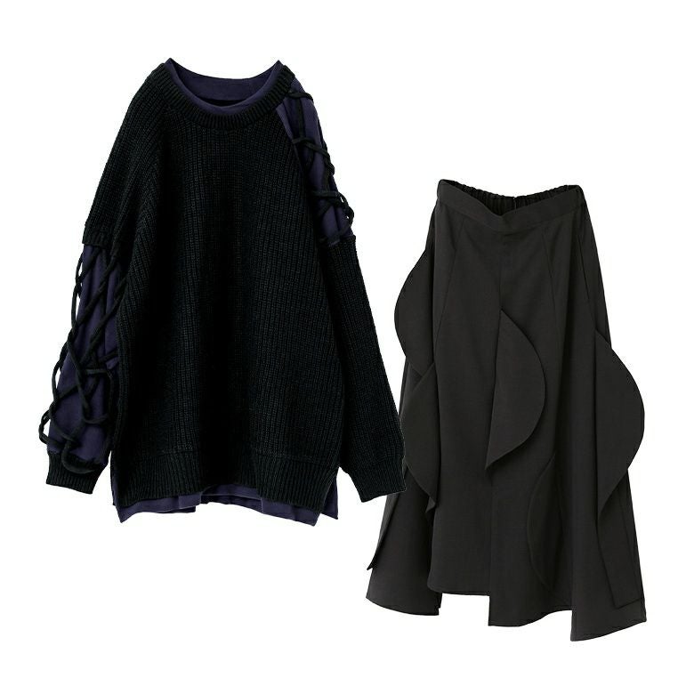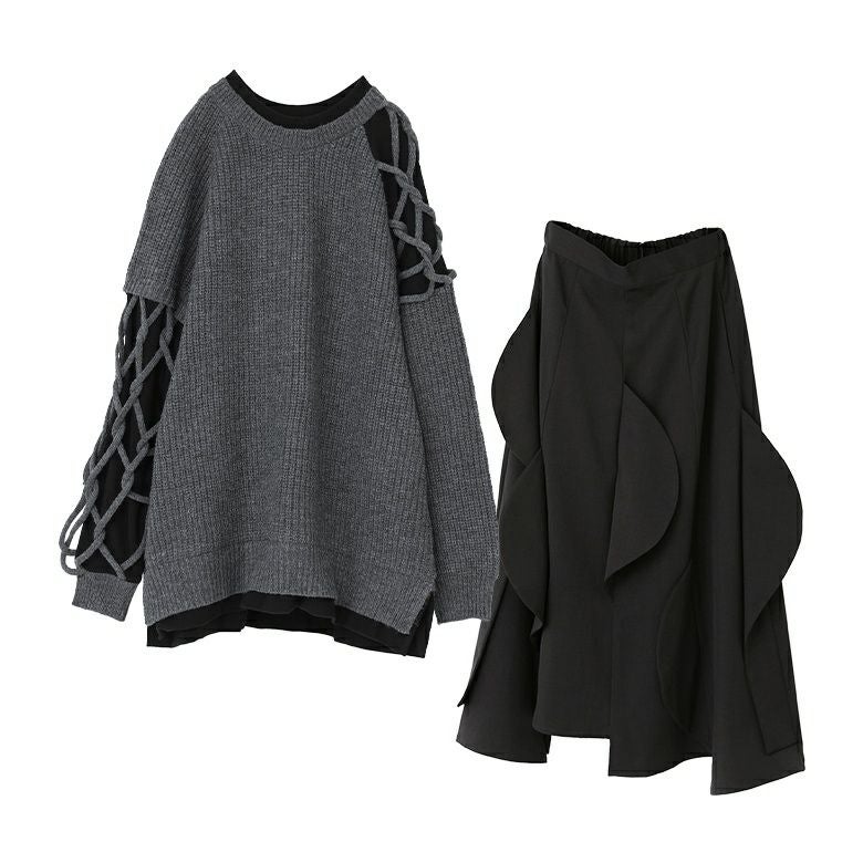 『異素材ドッキングクロスデザインニット×ハーフサークルモチーフスカートコーデ2点SET』