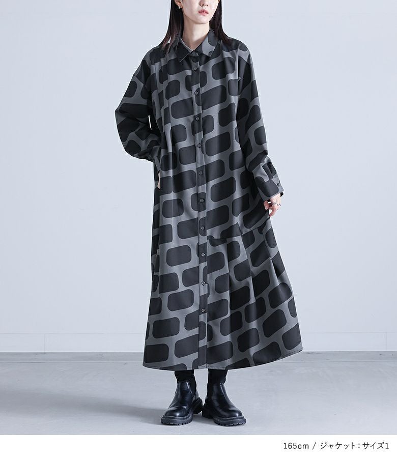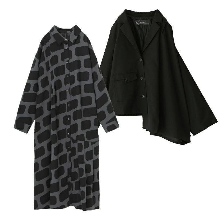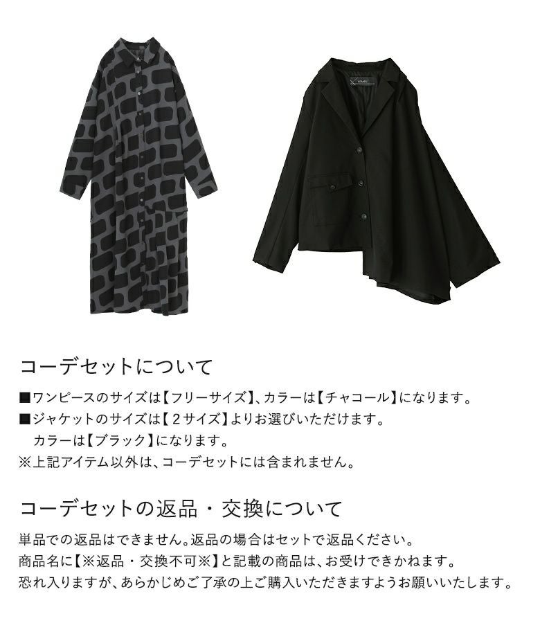 『スクエアプリントシャツワンピース×アシンメトリータックジャケットコーデ2点SET』