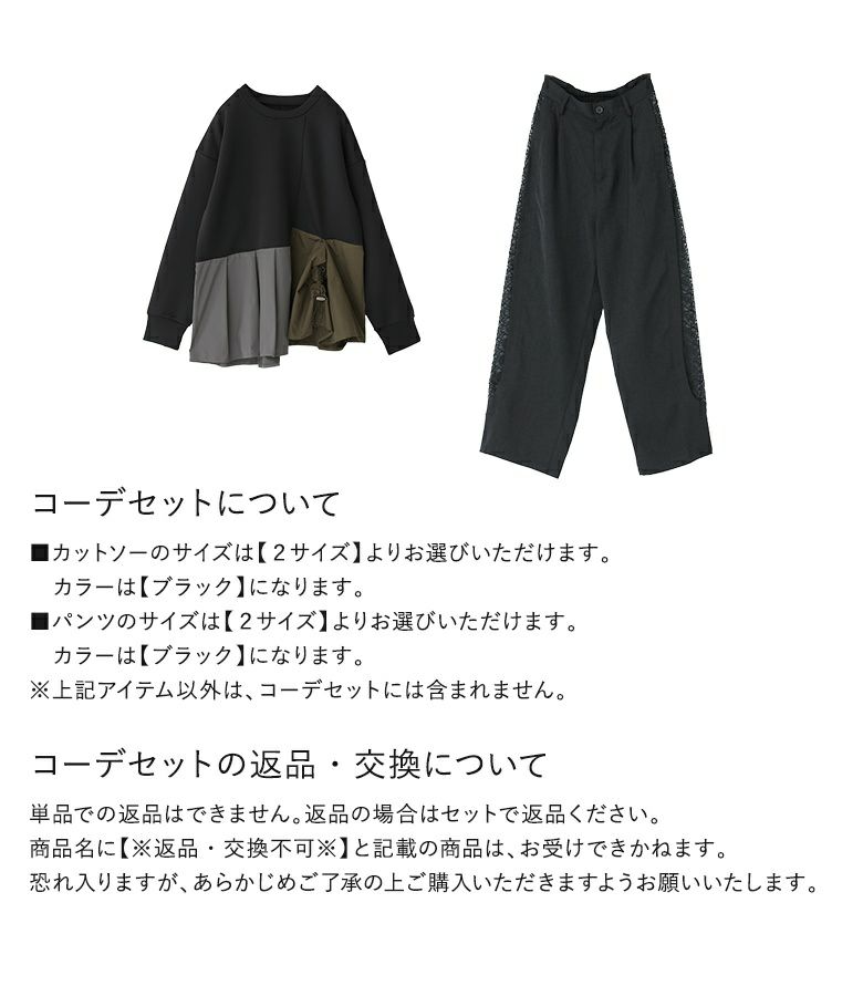 他の画像を見る 送料無料★届いてすぐにお洒落に変身2点コーデSET♪ 【送料無料】『異素材タックカットソー×脇レース切替バレルパンツコーデ2点SET』【メール便不可】【40】 ¥ 11,960 税込 (0)