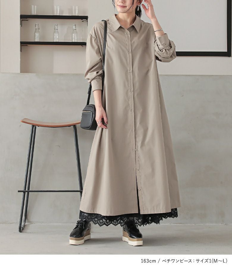 4. 【送料無料】『贅沢レースロングペチワンピース×袖ギャザーシャツワンピースコーデ2点SET』【メール便不可】【20】