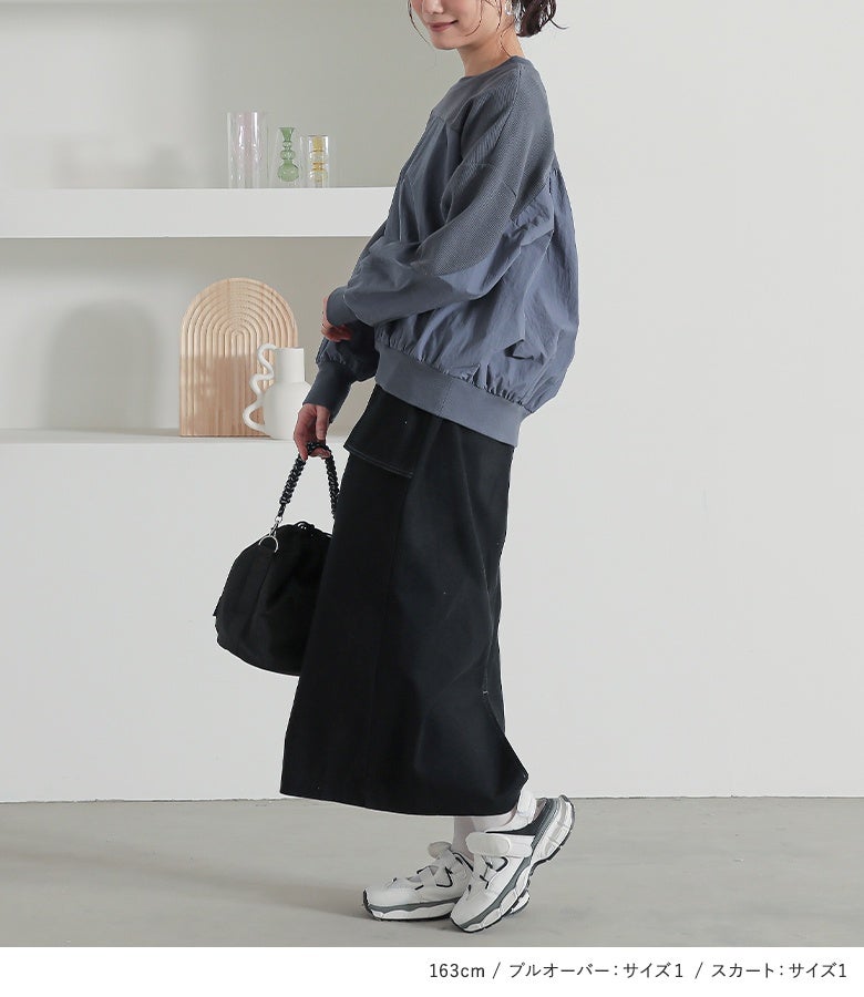 4. 『異素材切り替えプルオーバー×立体ポケットナロースカートコーデ2点SET』【メール便不可】【20】