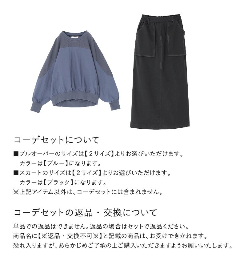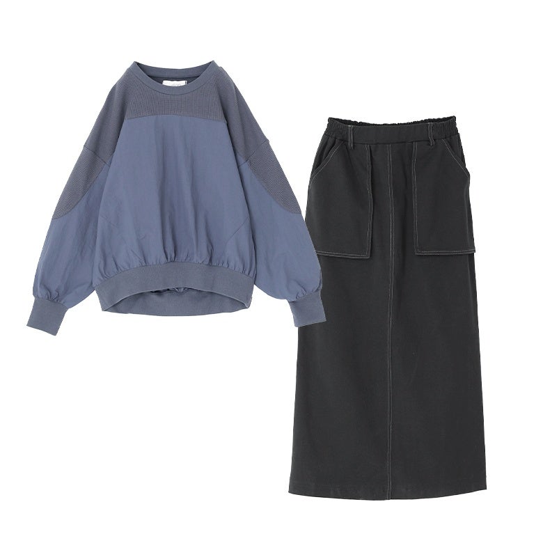 『異素材切り替えプルオーバー×立体ポケットナロースカートコーデ2点SET』