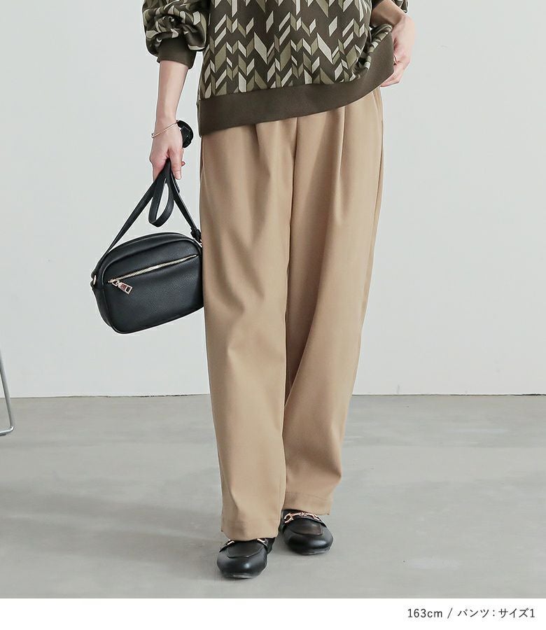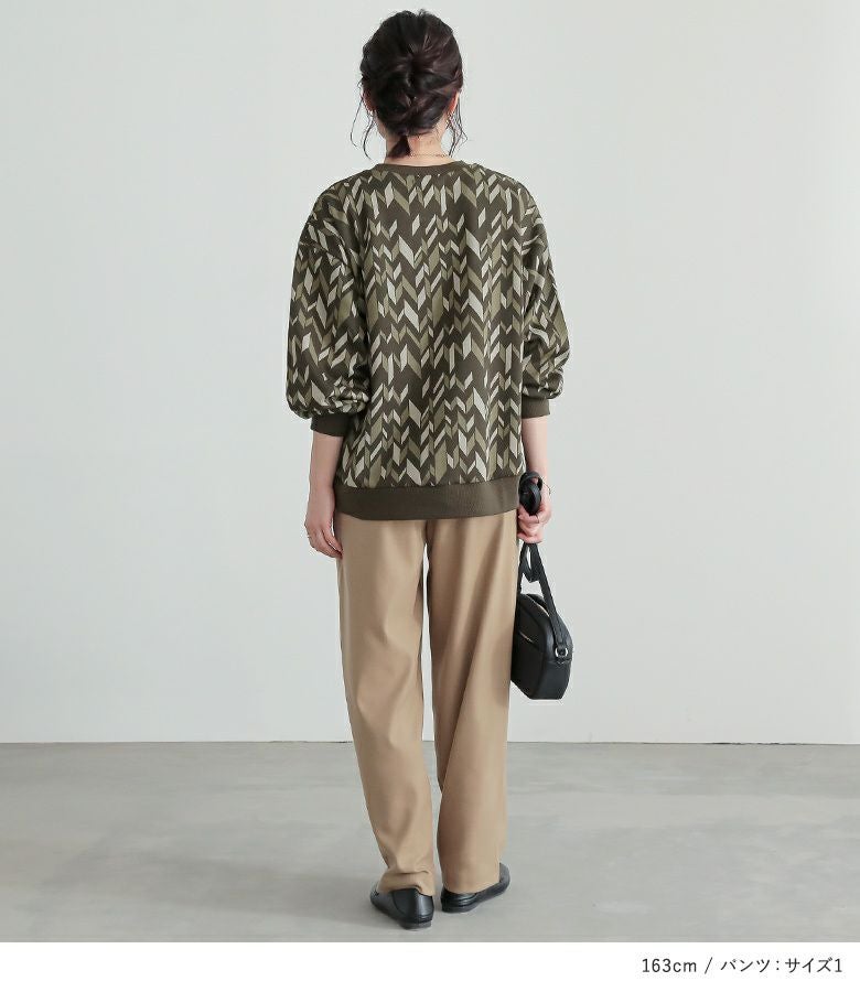 4. 【送料無料】『幾何学柄ジャカードカットソー×微起毛ワンタックテーパードパンツコーデ2点SET』【メール便不可】【30】