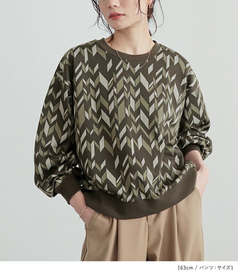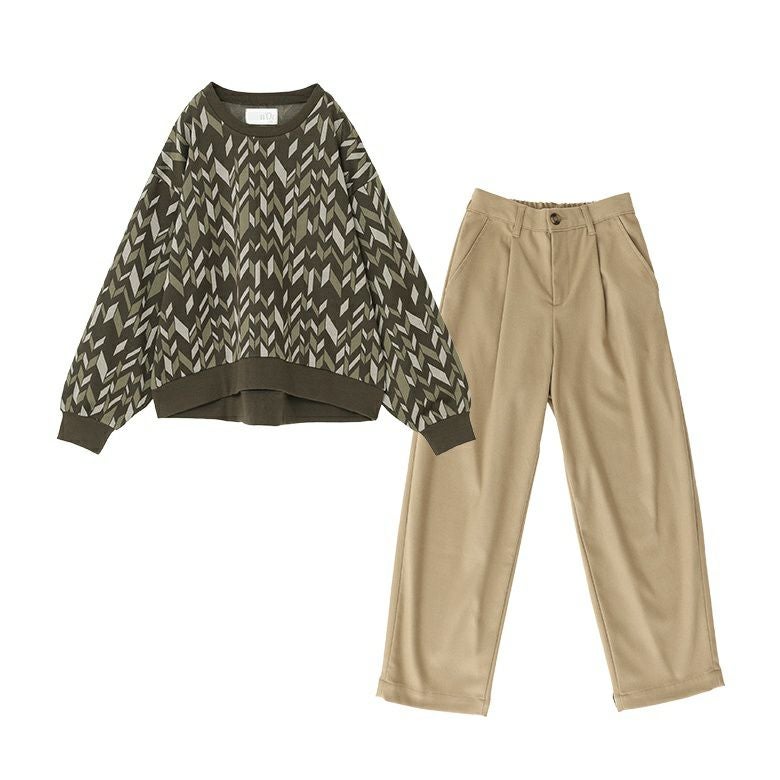 『幾何学柄ジャカードカットソー×微起毛ワンタックテーパードパンツコーデ2点SET』
