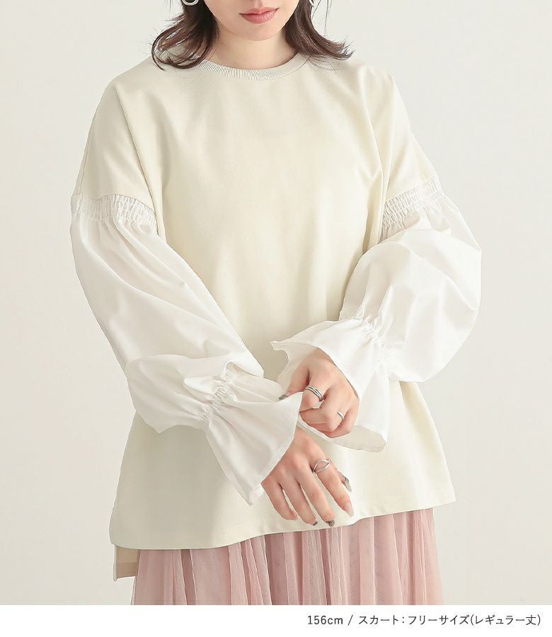 4. 『異素材キャンディースリーブスウェット×配色ボリュームチュールスカートコーデ2点SET』【メール便不可】【20】