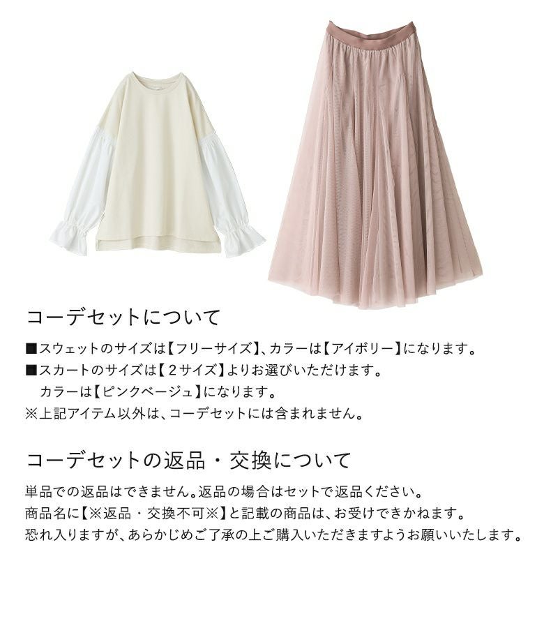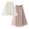 『異素材キャンディースリーブスウェット×配色ボリュームチュールスカートコーデ2点SET』