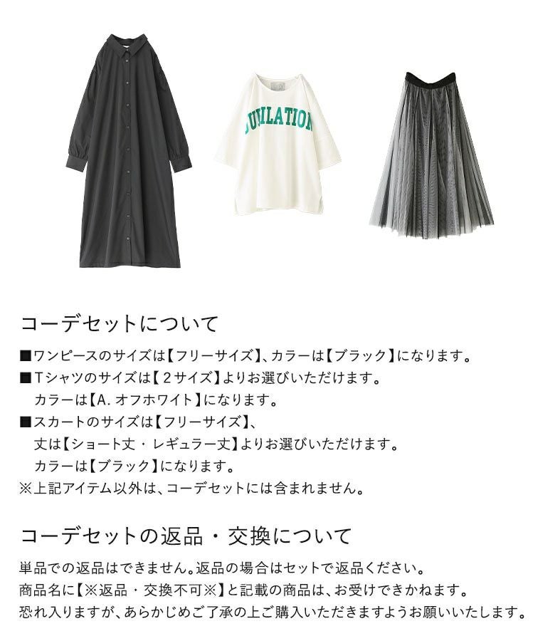『シャツワンピース×汗ジミ防止ゆるっとロゴTシャツ×配色ボリュームチュールスカートコーデ3点SET』