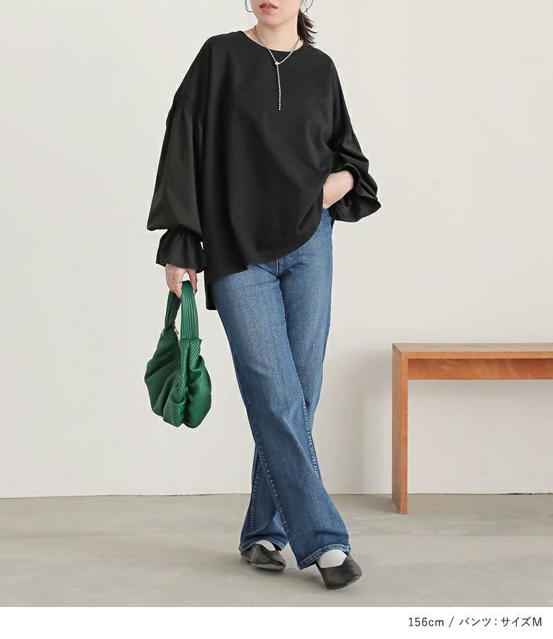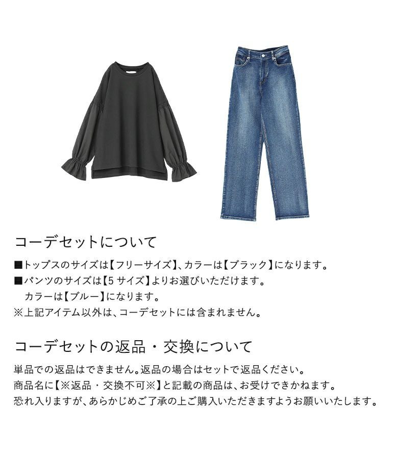 『異素材キャンディースリーブスウェット×お腹すっきりデニムパンツコーデ2点SET』