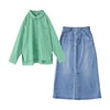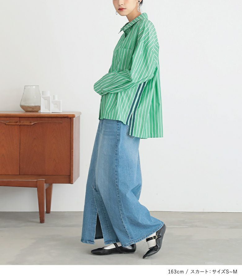 『サイドラインストライプシャツ×ストレッチデニムナロースカートコーデ2点SET』