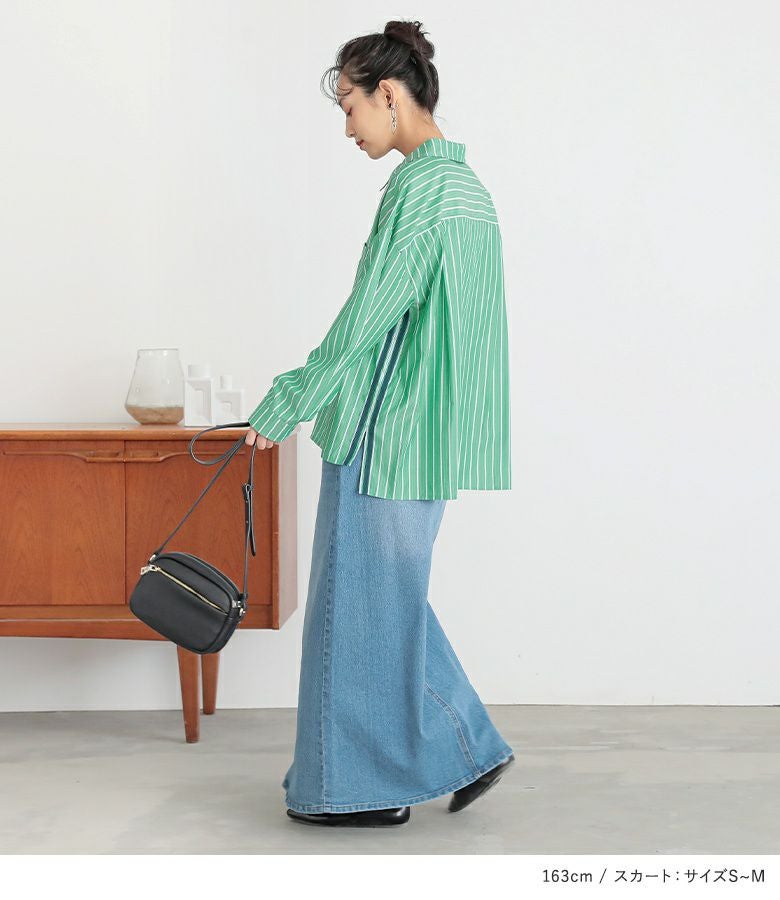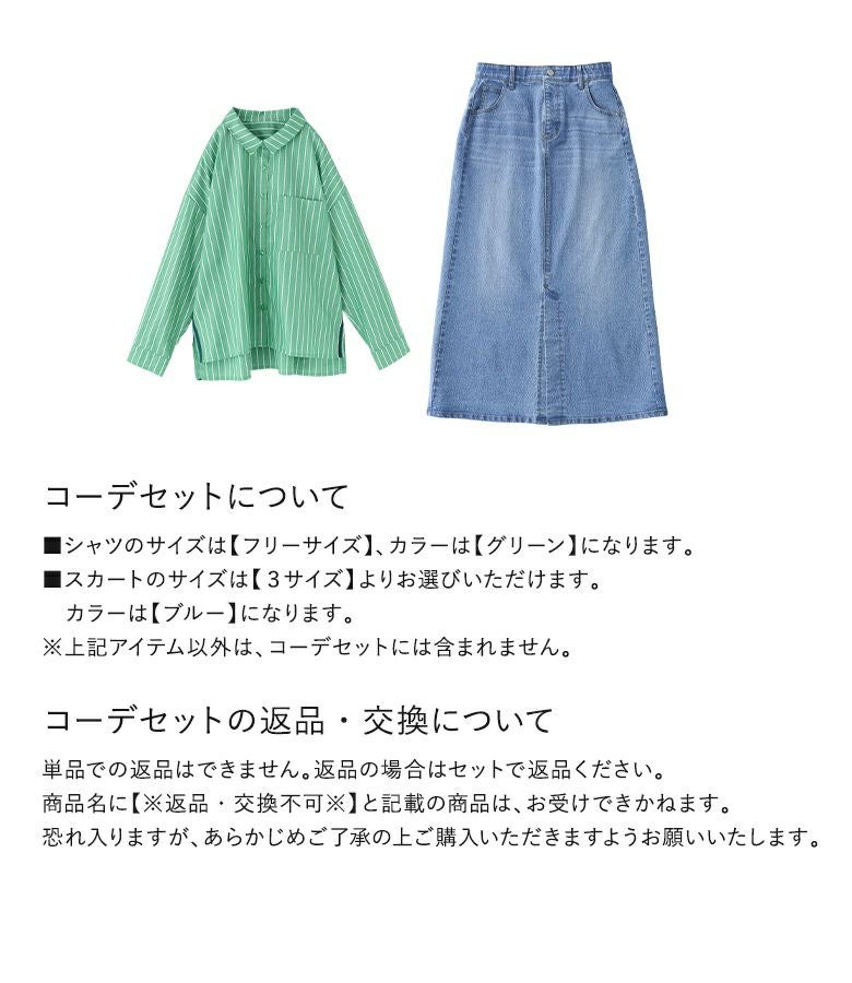 4. 【送料無料】『サイドラインストライプシャツ×ストレッチデニムナロースカートコーデ2点SET』【メール便不可】【20】