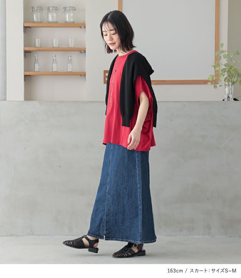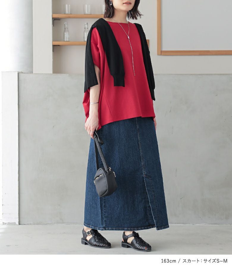 4. 『汗ジミ防止&消臭機能付きドルマンカットソー×ストレッチデニムナロースカートコーデ2点SET』【メール便不可】【20】