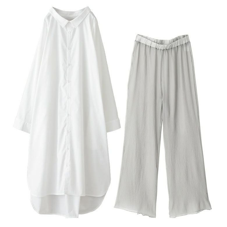 『クレープシフォンレギンス×シンプルシャツワンピースコーデ2点SET』