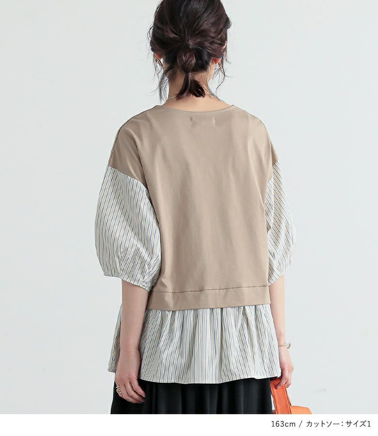 4. 『異素材ストライプペプラムカットソー×ゆるひら涼スラブパンツコーデ2点SET』【メール便不可】【20】