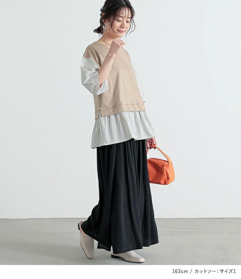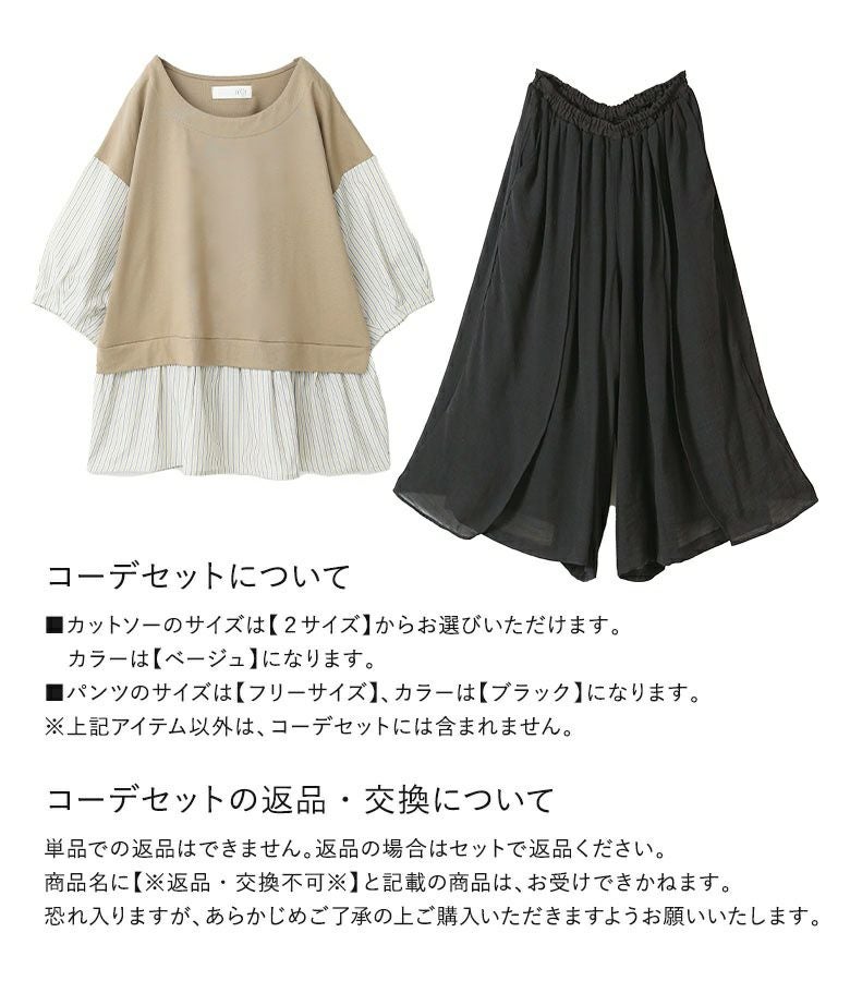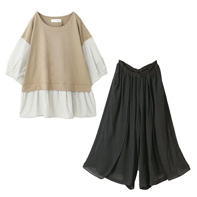 『異素材ストライプペプラムカットソー×ゆるひら涼スラブパンツコーデ2点SET』