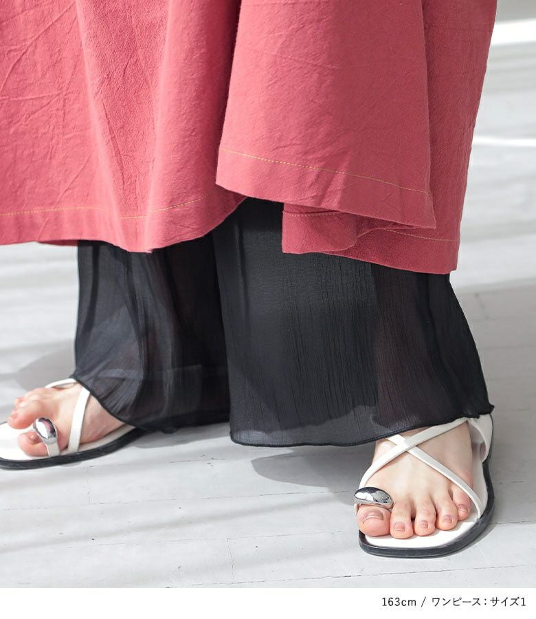4. 【送料無料】『クレープシフォンレギンス×スキッパーデザインフレアワンピースコーデ2点SET』【メール便不可】【30】
