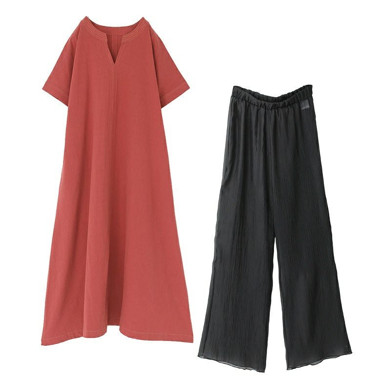 『クレープシフォンレギンス×スキッパーデザインフレアワンピースコーデ2点SET』