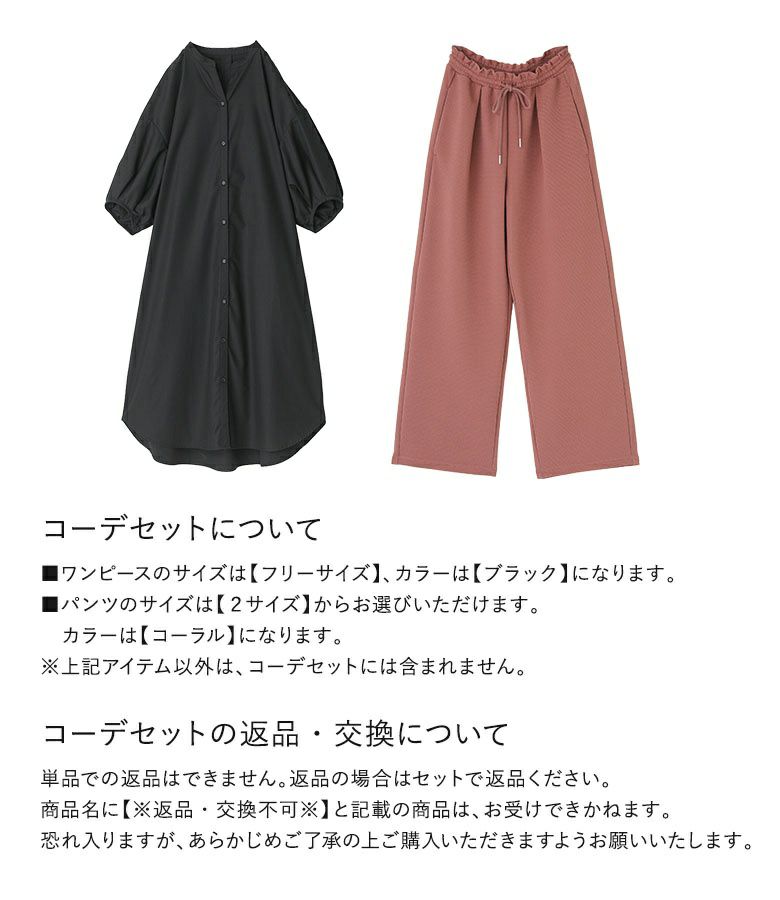 『キーネックタックドルマンワンピース×接触冷感カットソーイージーワイドパンツコーデ2点SET』
