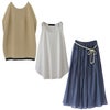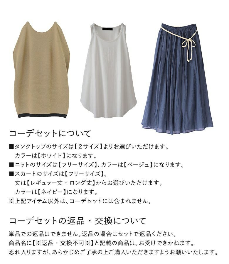 【送料無料】『ふわさらロングスカート×着回しシンプルシャツ型タンクトップ×裾ラインコクーンニットコーデ3点SET』