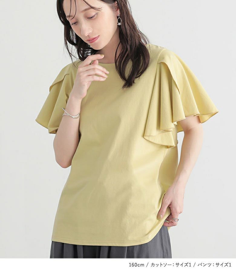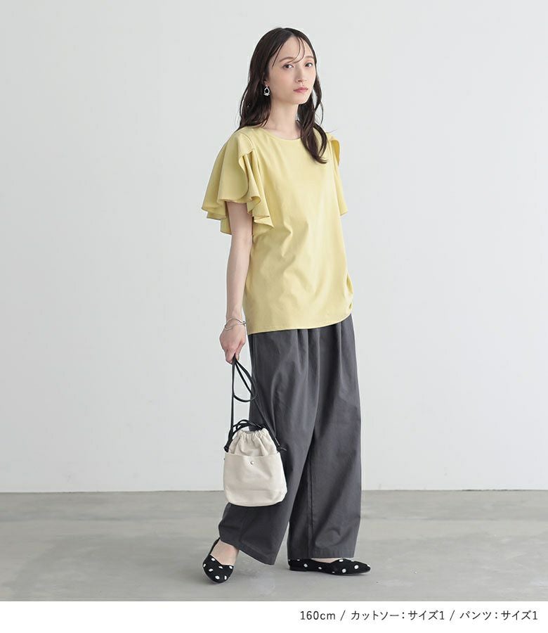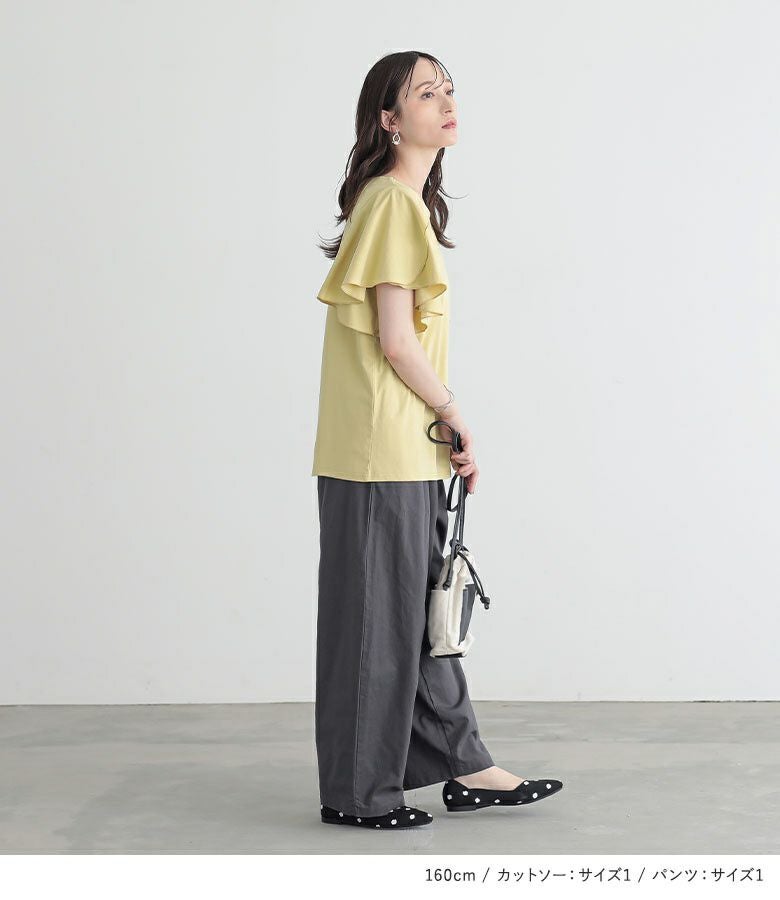 『袖フレアカットソー×綿麻混冷感バレルレッグパンツコーデ2点SET』
