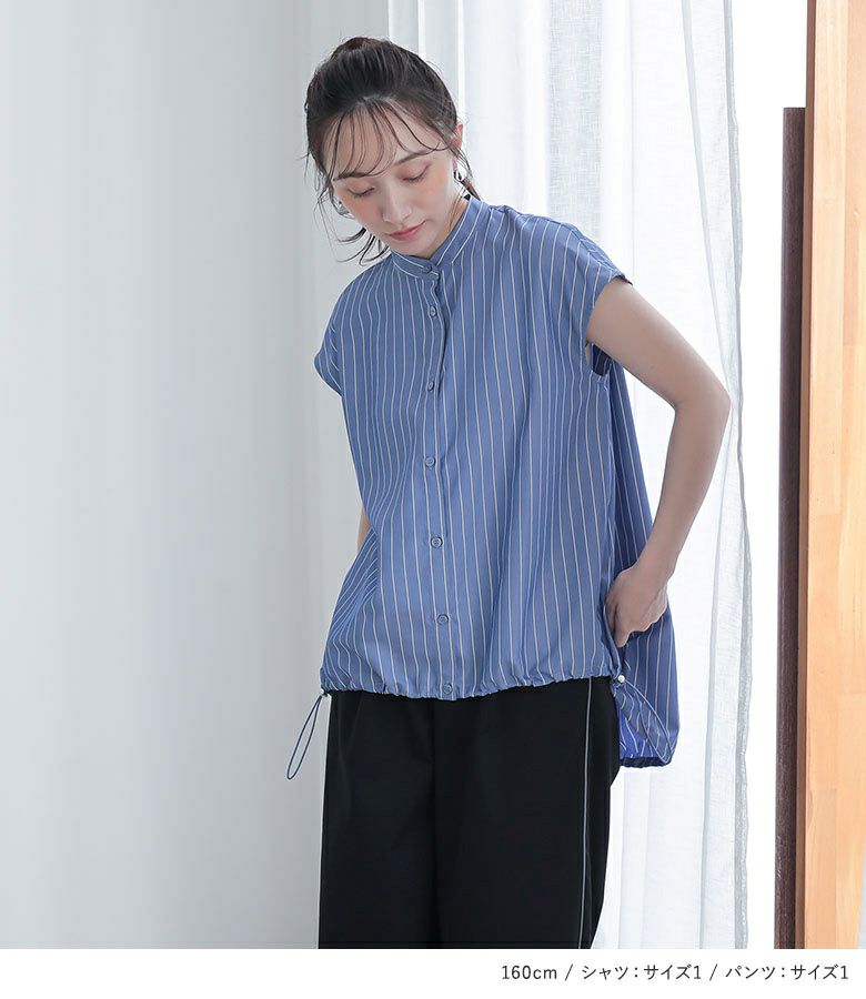 4. 【送料無料】『裾ドロストストライプシャツ×サイドライン入り接触冷感カーブパンツコーデ2点SET』【メール便不可】【40】