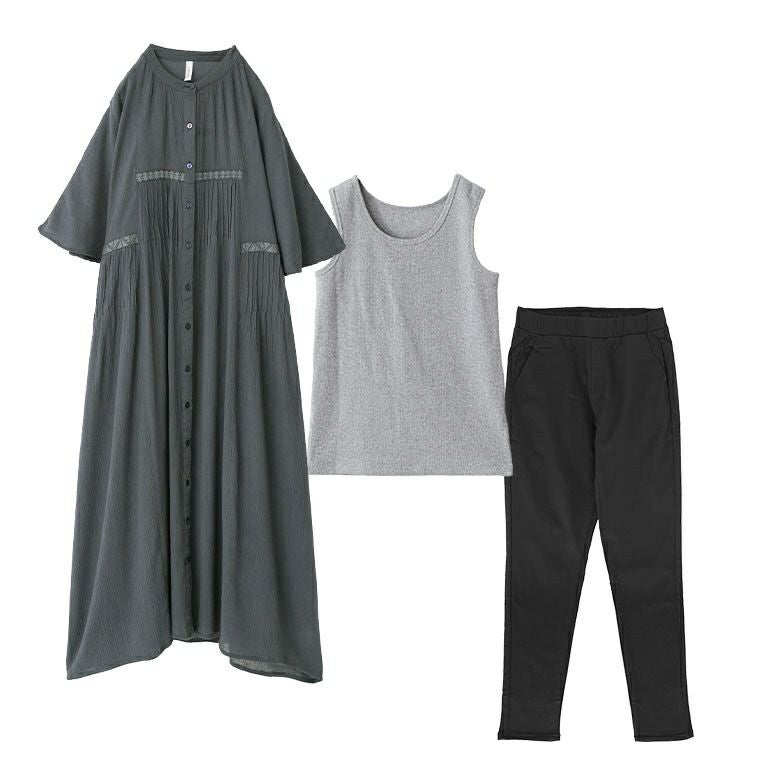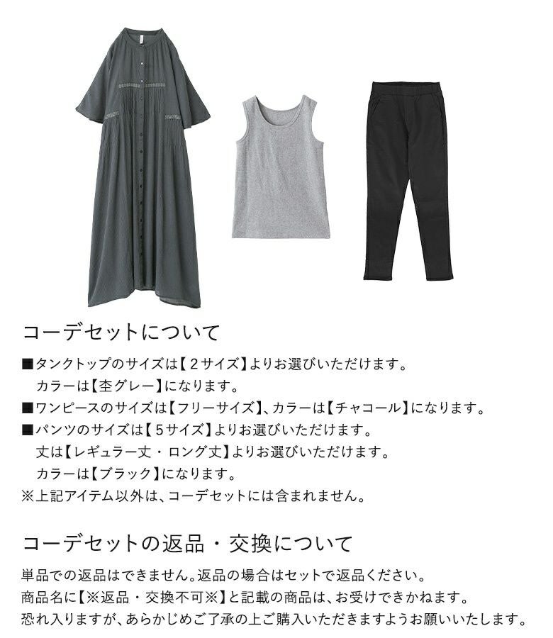 『楊柳ピンタックワンピース×リブタンクトップ×NEWフレキシンストレッチレギパンコーデ3点SET』