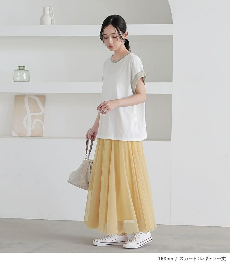 『ラメ切替Tシャツ×配色ボリュームチュールスカートコーデ2点SET』