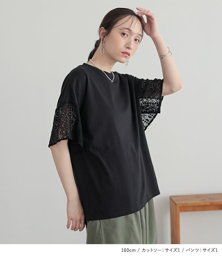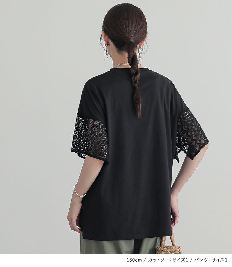 4. 『レーススリーブカットソー×綿麻混冷感バレルレッグパンツコーデ2点SET』【メール便不可】【20】
