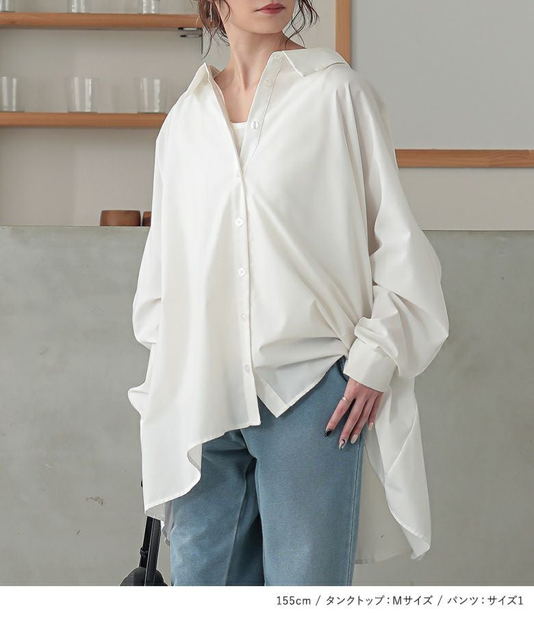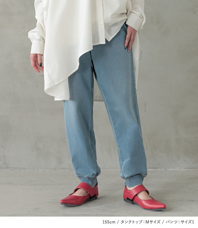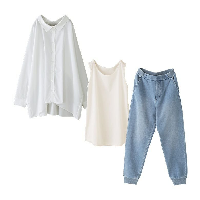 『カットデニムジョガーパンツ×ドルマンシルエットデザインシャツ×シンプルコットンタンクトップコーデ3点SET』